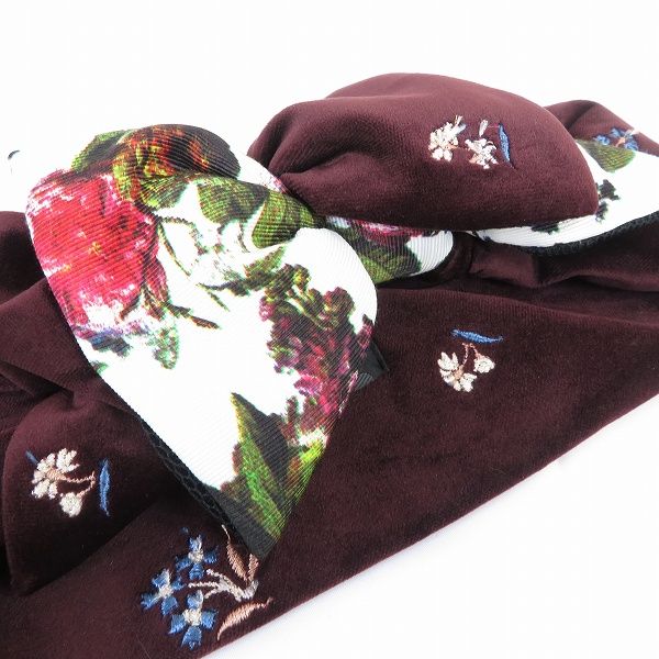 ◎商品名(タイトル):#we カシラ CA4LA ヘアバンド ターバン エンジ マルチ 花柄 花刺繍 リボン ヘアアクセサリー ベロア調 美品 レディース [963113] k01