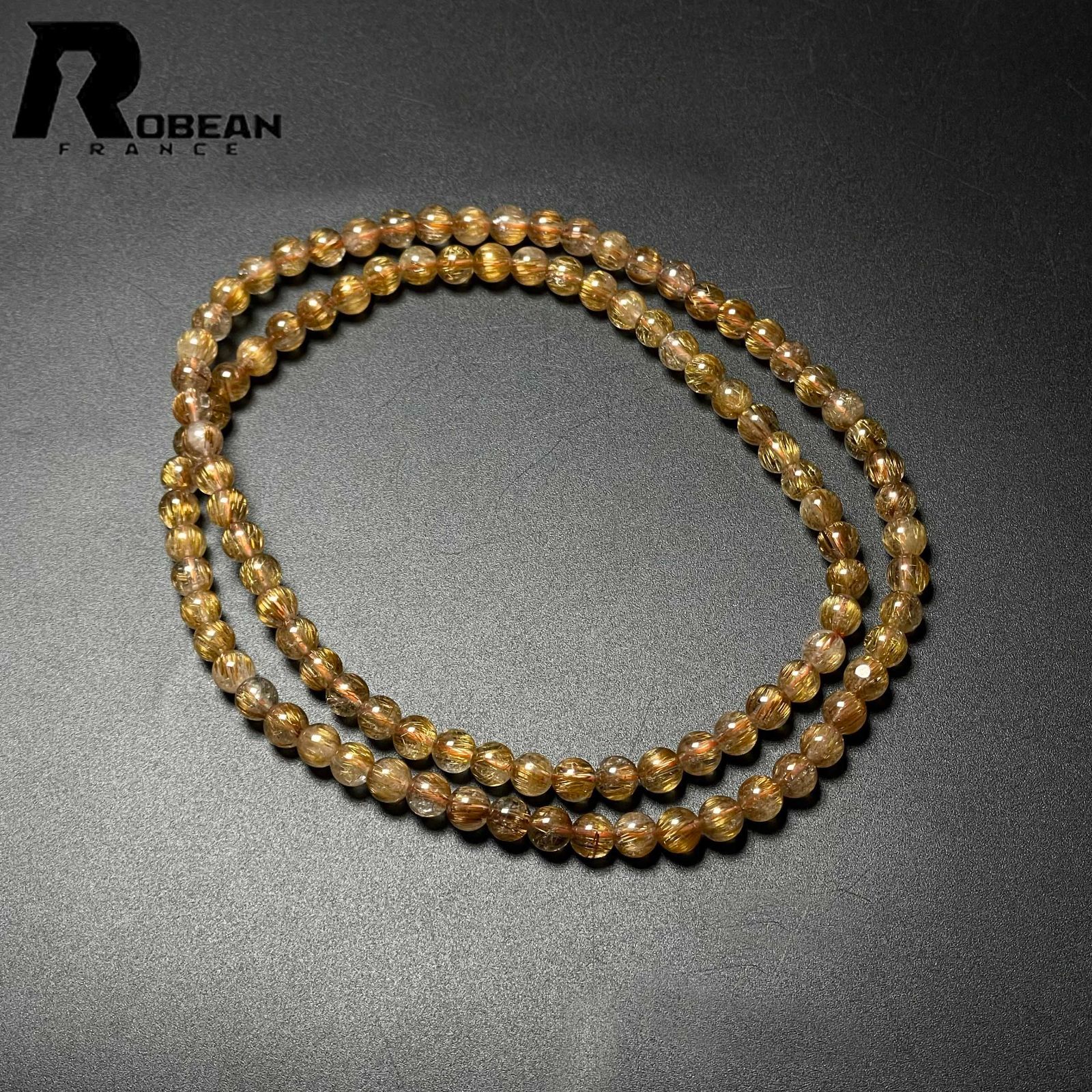 絶賛 EU製 定価14万円 ROBEAN 銅髪ルチルクォーツ 3本巻きブレスレット パワーストーン 天然石 金運 お守り プレゼント 5.4-5.8 mm M 085289