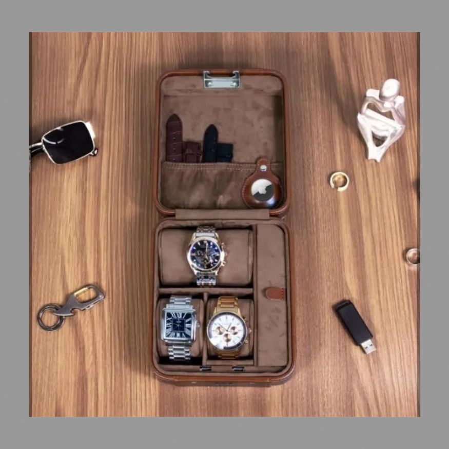 本革ナパ柄スクエア時計ケースジッパーバッグシンプルレザー時計収納バッグ二重時計ケース