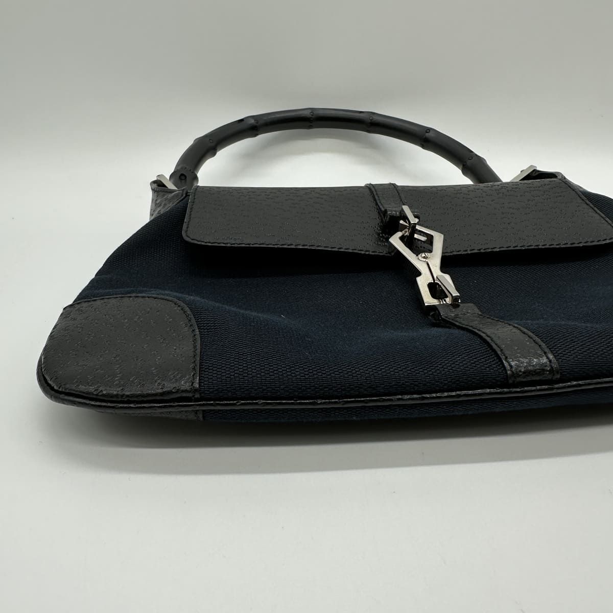 GUCCI グッチ 001 4096 ショルダーバッグ ハンドバッグ キャンバス バンブー ブラック レザー レディース メンズ ヴィンテージ