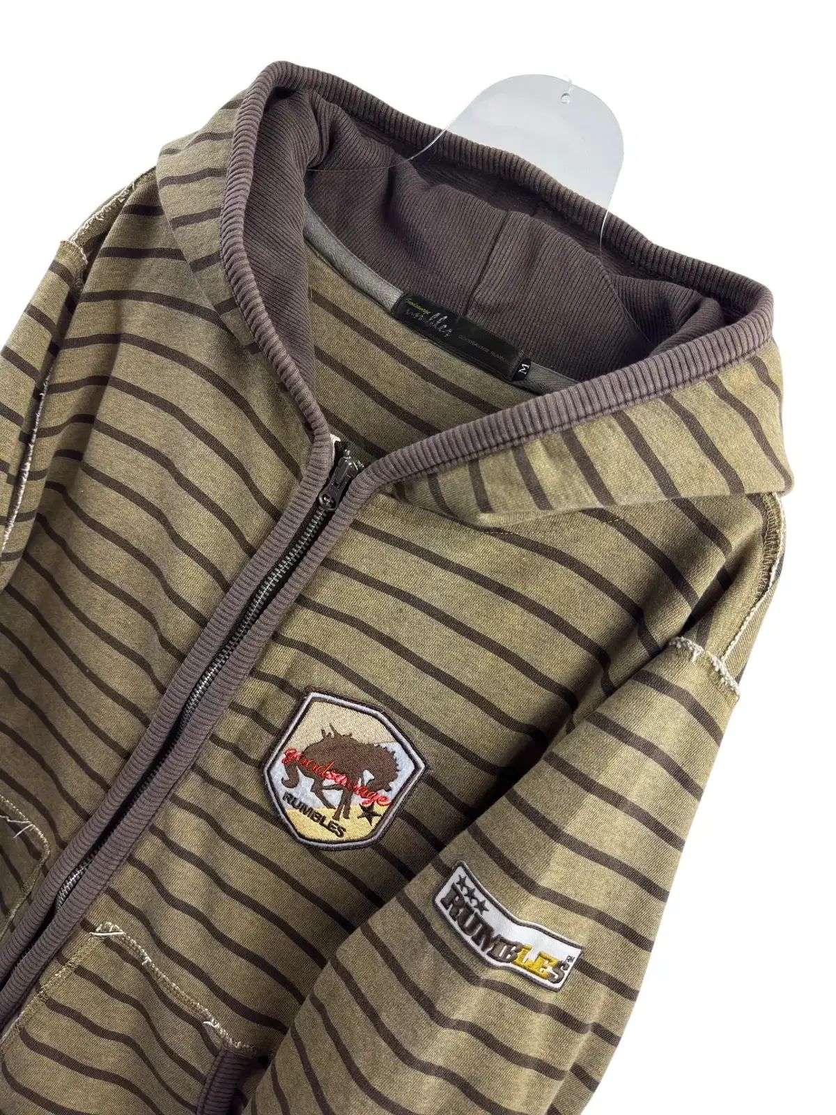 JPN アメカジ ストライプ パッチ ジップアップパーカー フード付き 700