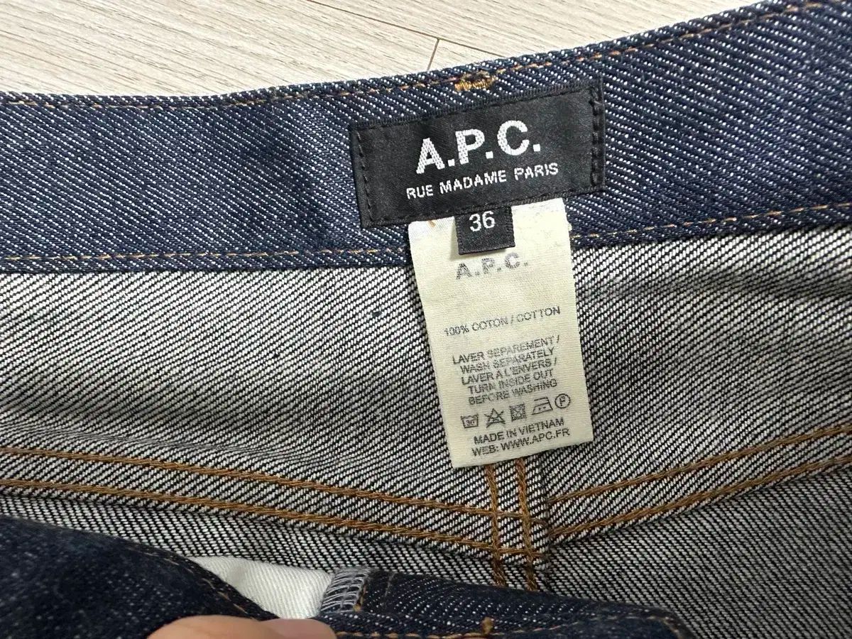 これはA.P.C.アペッセのデニムミニスカートです。ダークカラーのデニム素材で、すっきりとした落ち感のあるフィット感が特徴です。写真のサイズタグを参照してください。他に質問がない場合は、すぐに安全な支払いを行ってください!