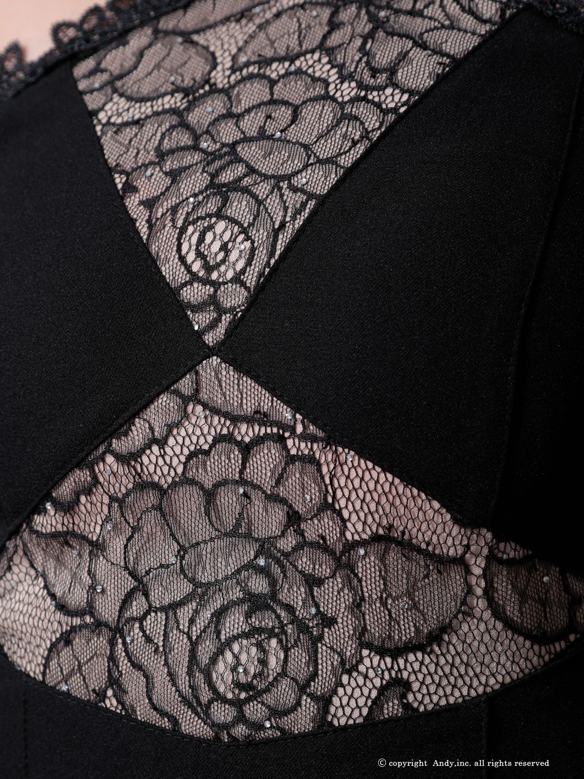 ブラックS OK 2961-W-2507 XSサイズあり ANDY|アンディ ビジューリボン| ホルターネック| レース| 切替| ストレッチ| フ | ミニドレス| キャバドレス