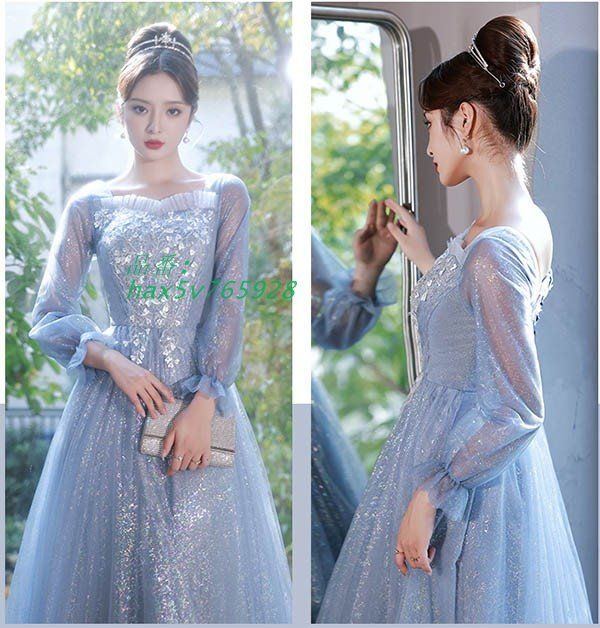 ドレス 大人 ピアノ 発表会 ロング丈 ぽっちゃり 袖付き ワンピース 大きいサイズ 演奏会 Aライン ピアノ発表会 ステージドレス イブニングドレス hax 5 v 765928