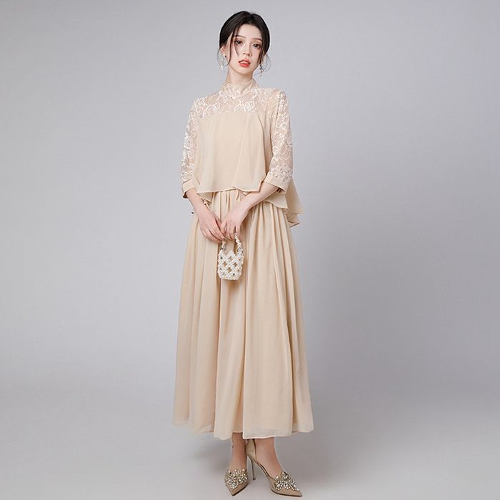 シフォンワンピースワンピースレディース二次会花嫁シンプルミモレ丈Aラインおよばれ女子会パーティードレスフォーマルドレス