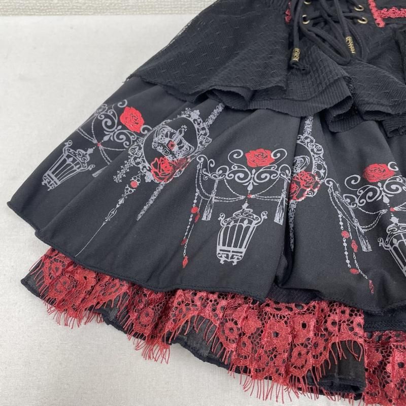 OZZ CROCE オッズオン スカート ミニスカート シャンデリア プリント ティアード ミニ丈 レース フリル 編み上げ レースアップ ゴシック調