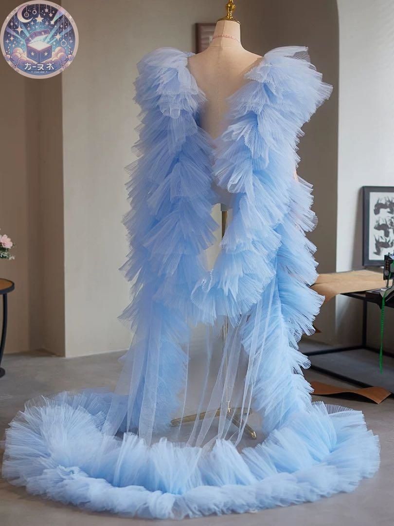 ♥ フリルスリーブがゴージャスなソフトチュールのロングショール