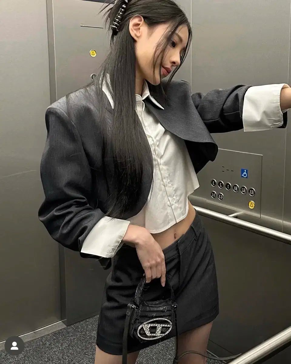 カーキポイントは、'23年に発売されたチャコールカラーのミニスーツセットアップ商品です。