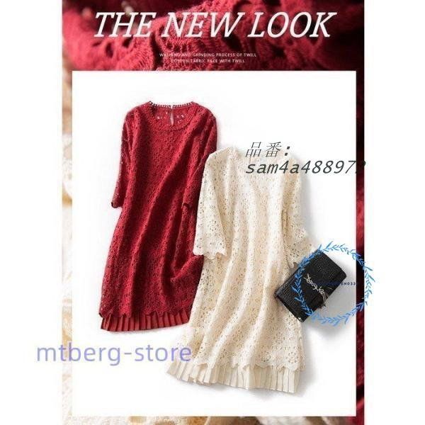 ワンピース レディース 夏 40代 きれいめ 膝丈 通勤 プリーツスカート 春夏 上品 七分袖 透かし雕り 結婚式 総レースワンピース OL フォーマル オシャレ am 4 a 488972