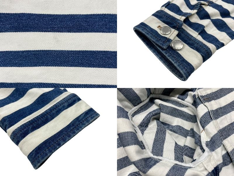 PRADA プラダ ロゴプレートボーダークロップドデニムジャケット GFB 288 サイズ42 ホワイト ブルー 4 b 006947