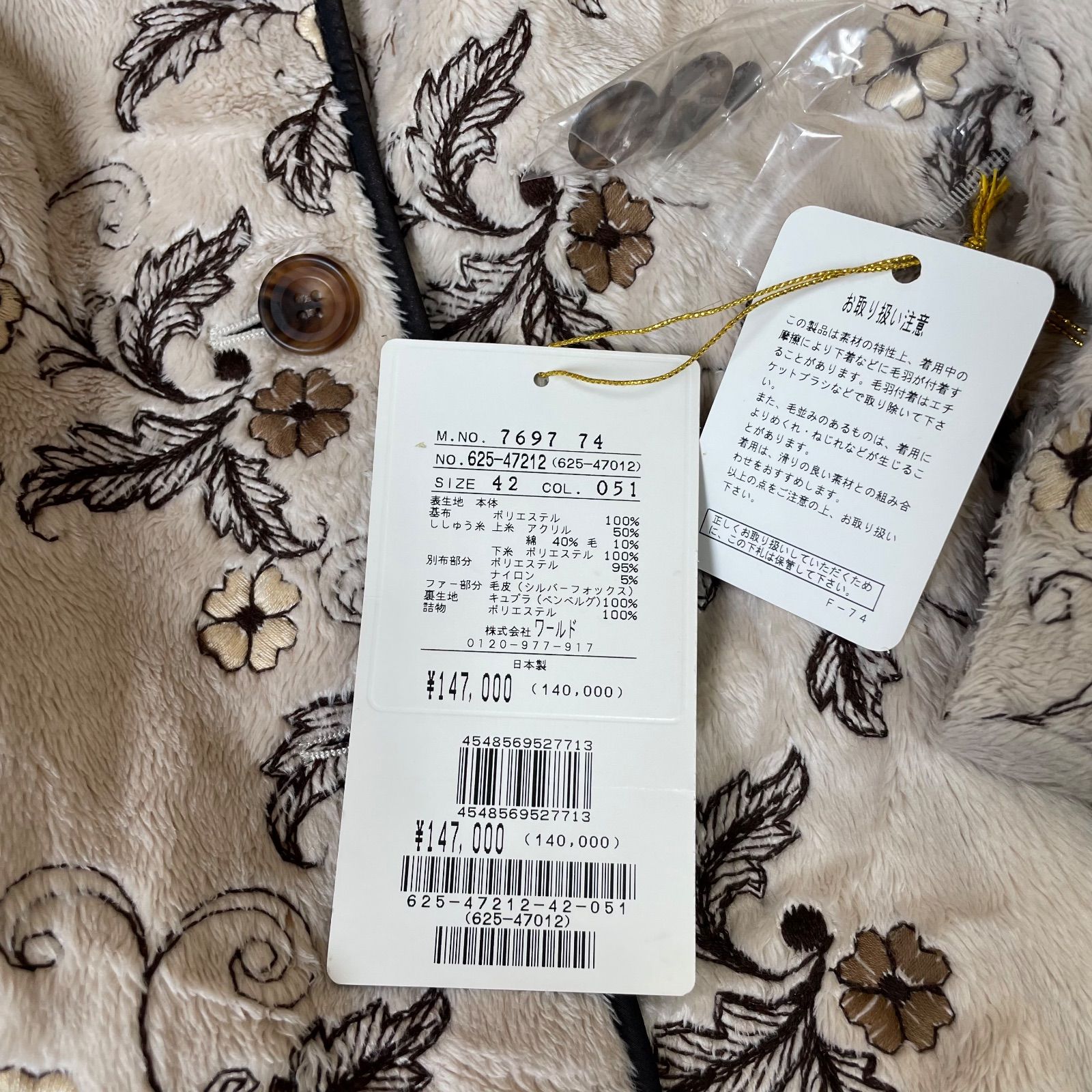 ZM 1448 ville d azur ビルダジュール 花柄ジャケット フリース素材 ファー部分シルバーフォックス ベージュ サイズ42 ♥タグ付