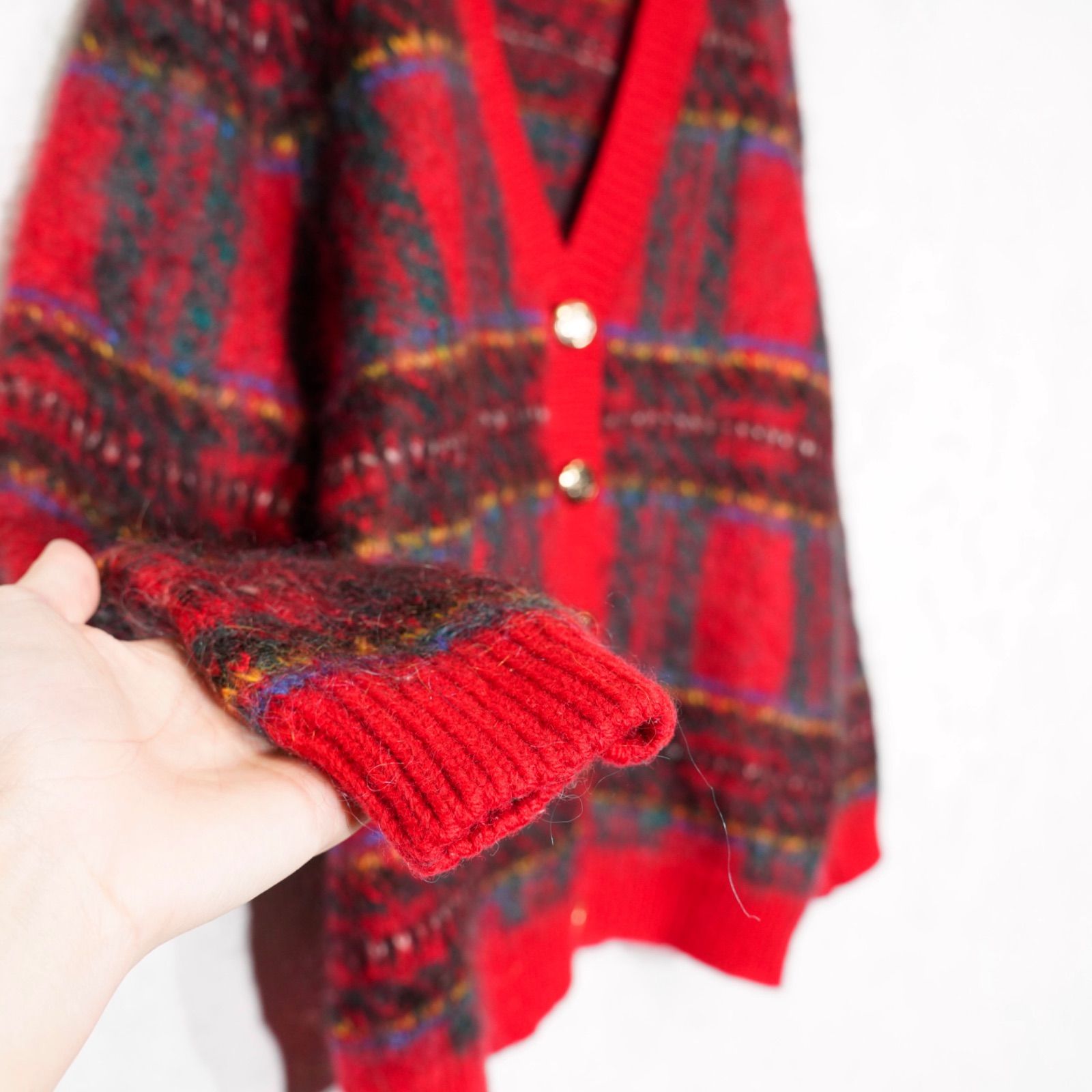 USA VINTAGE EDITIONS CHECK PATTERNED DESIGN MOHAIR KNIT CARDIGAN|アメリカ古着チェック柄デザインモヘアニットカーディガン
