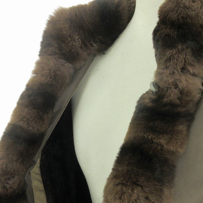 レリアン Leilian ラビットファー コート ミドル丈 中綿 毛皮 シルク ブラウン 茶 11 L位