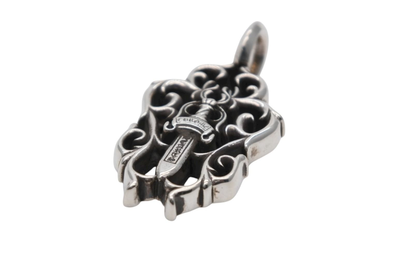 【説明】クロムハーツ ヴァインダガー ペンダントトップです。ダガーモチーフの小ぶりなサイズ感のペンダントトップでユニセックスでお使いいただけます。美しい彫刻デザインが魅力的なアイテムです。