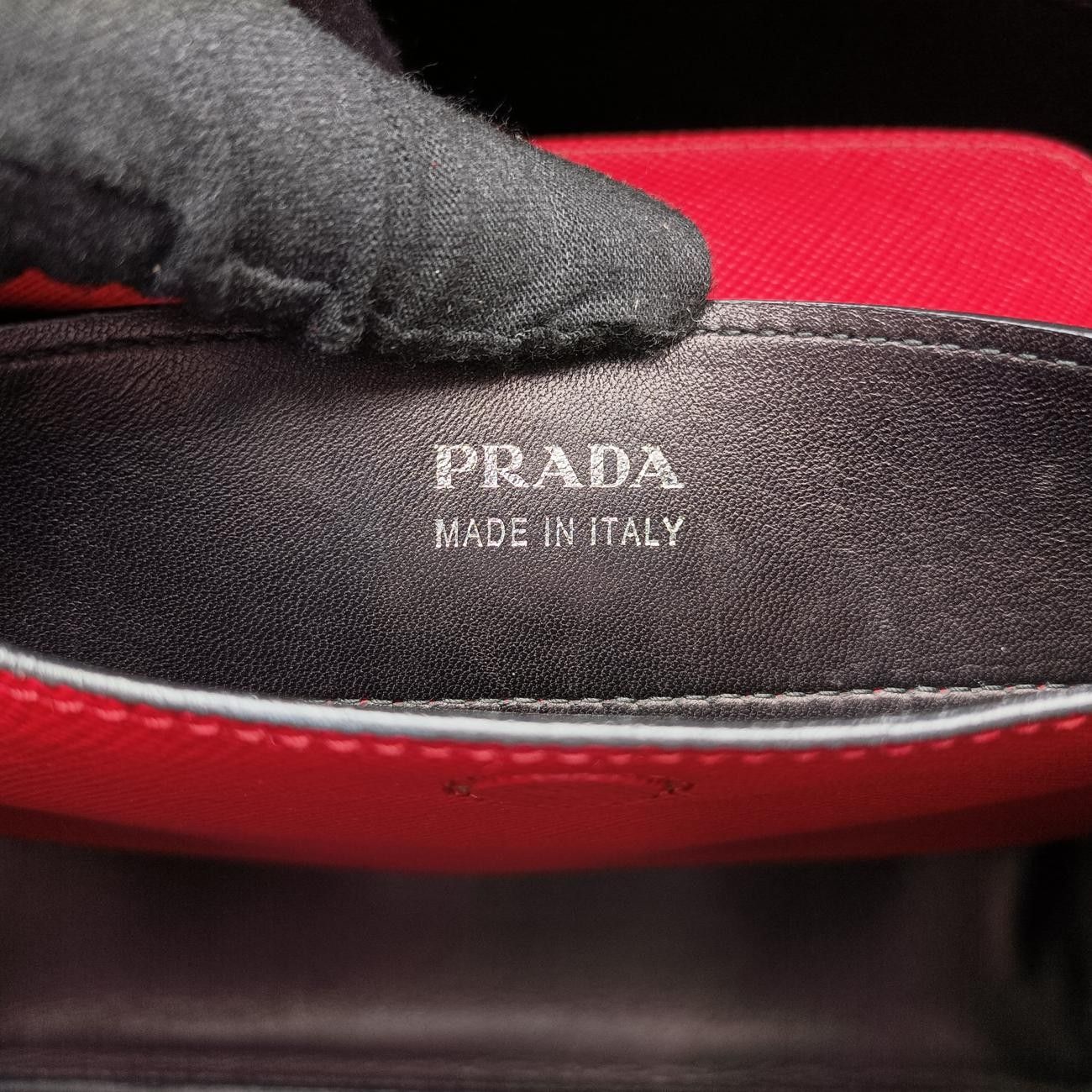 プラダPradaハーフフラップダブルターンロックレッドサフィアーノレザー 10