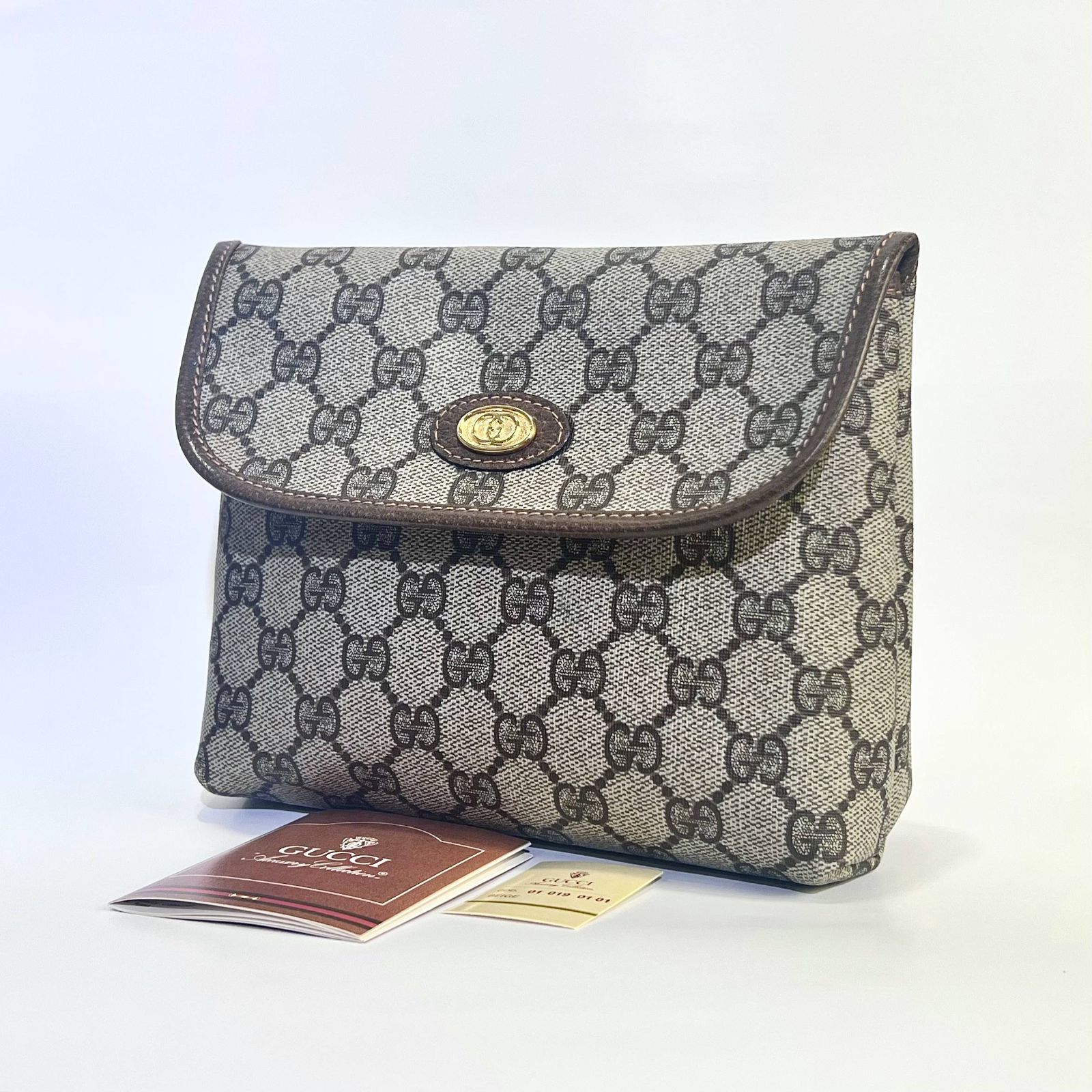 GUCCI グッチ GGスプリーム コスメポーチ クラッチバッグ ベージュ ブラウン GGキャンバス 説明書 箱 レディース ファッションバッグ 小物入れ aua