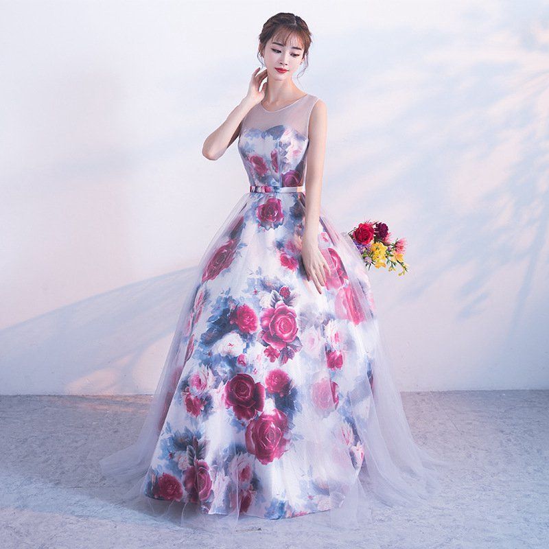 パーティードレス longdress ロングドレス 花柄 ワンピース パーティドレス ノースリーブ ウェディングドレス ウエディング ドレス 二次 hyxz48