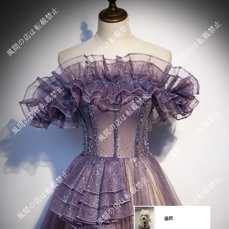 カラードレス ロングドレス イブニングドレス Aラインドレス オフショルダー ワンショルダー パープル 演奏会 発表会 二次会 成人式 卒業式