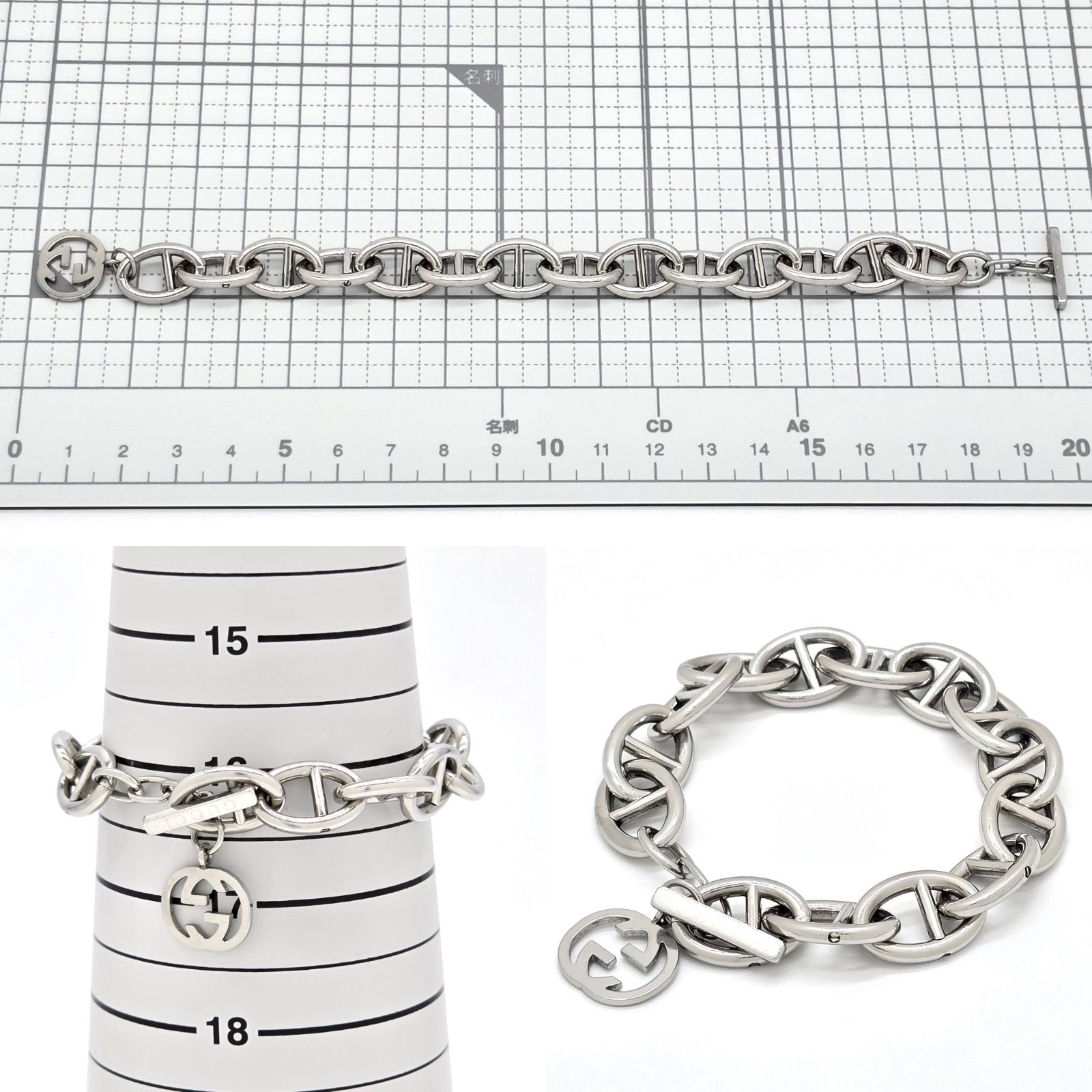 GUCCI グッチ アンカー チェーン ブレスレット インターロッキング チャーム PM 全長21.5㎝ シルバートーンメタル トム フォード期 男女兼用