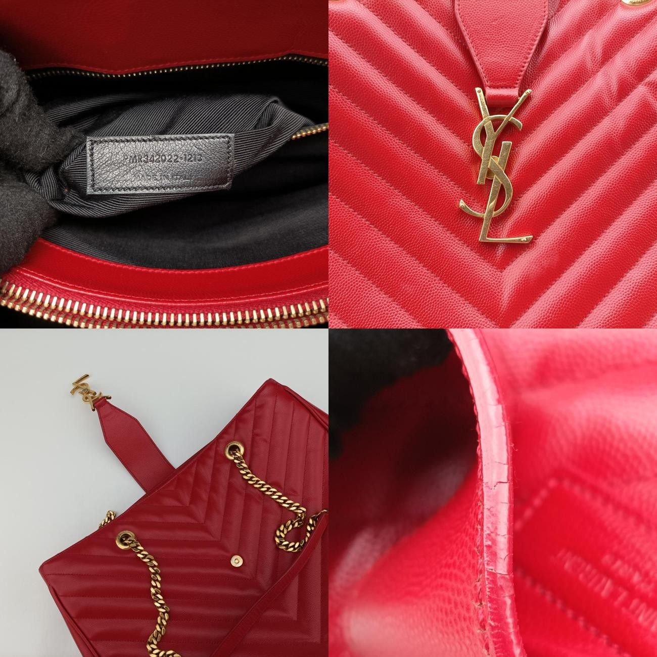 イヴサンローランYves Saint Laurentモノグラム チェーントートバッグレッドレザー .1213