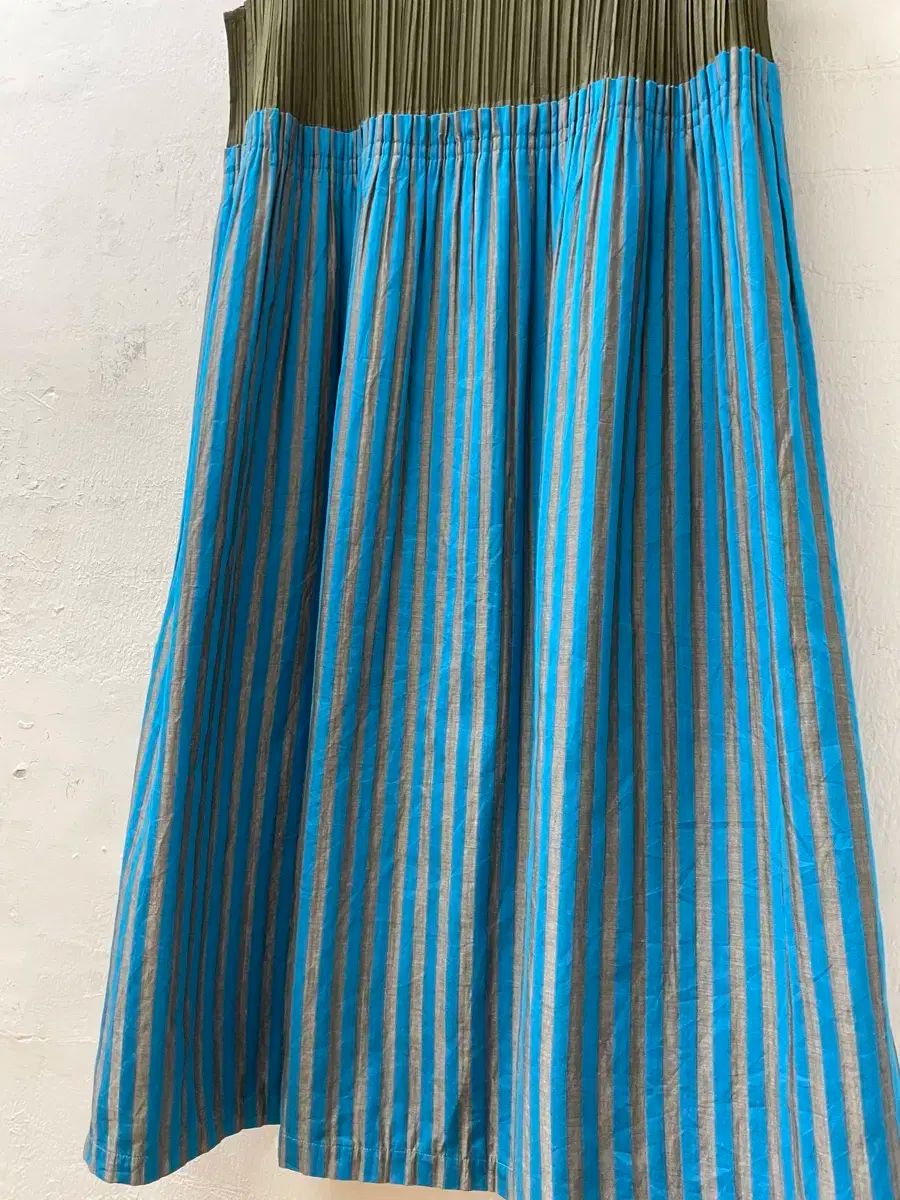 トップはカーキのシグネチャープリーツ生地で作られています