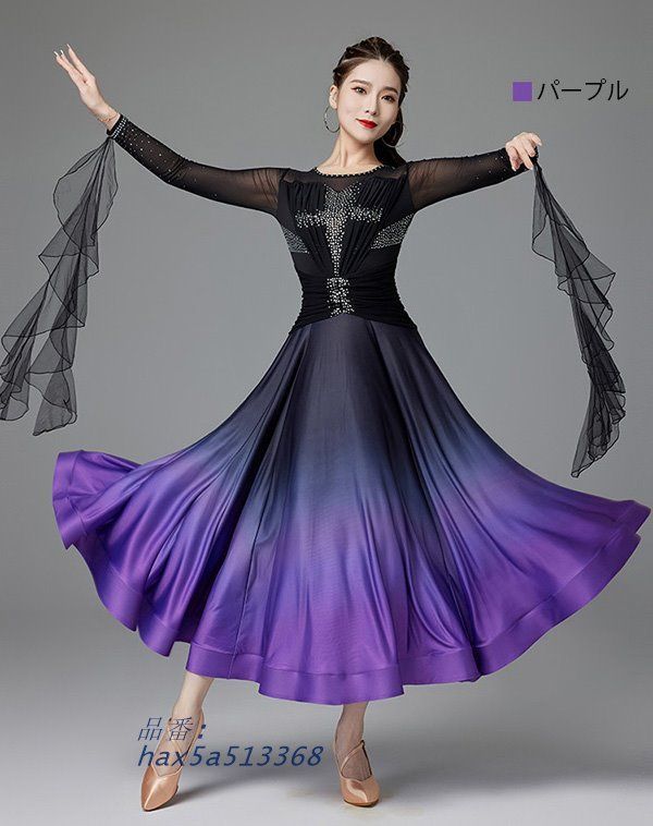 社交ダンス ドレス 競技用ドレス スタンダード パーティー 長袖 ワンピース 社交ダンス衣装 フリル hax 5 a 513368