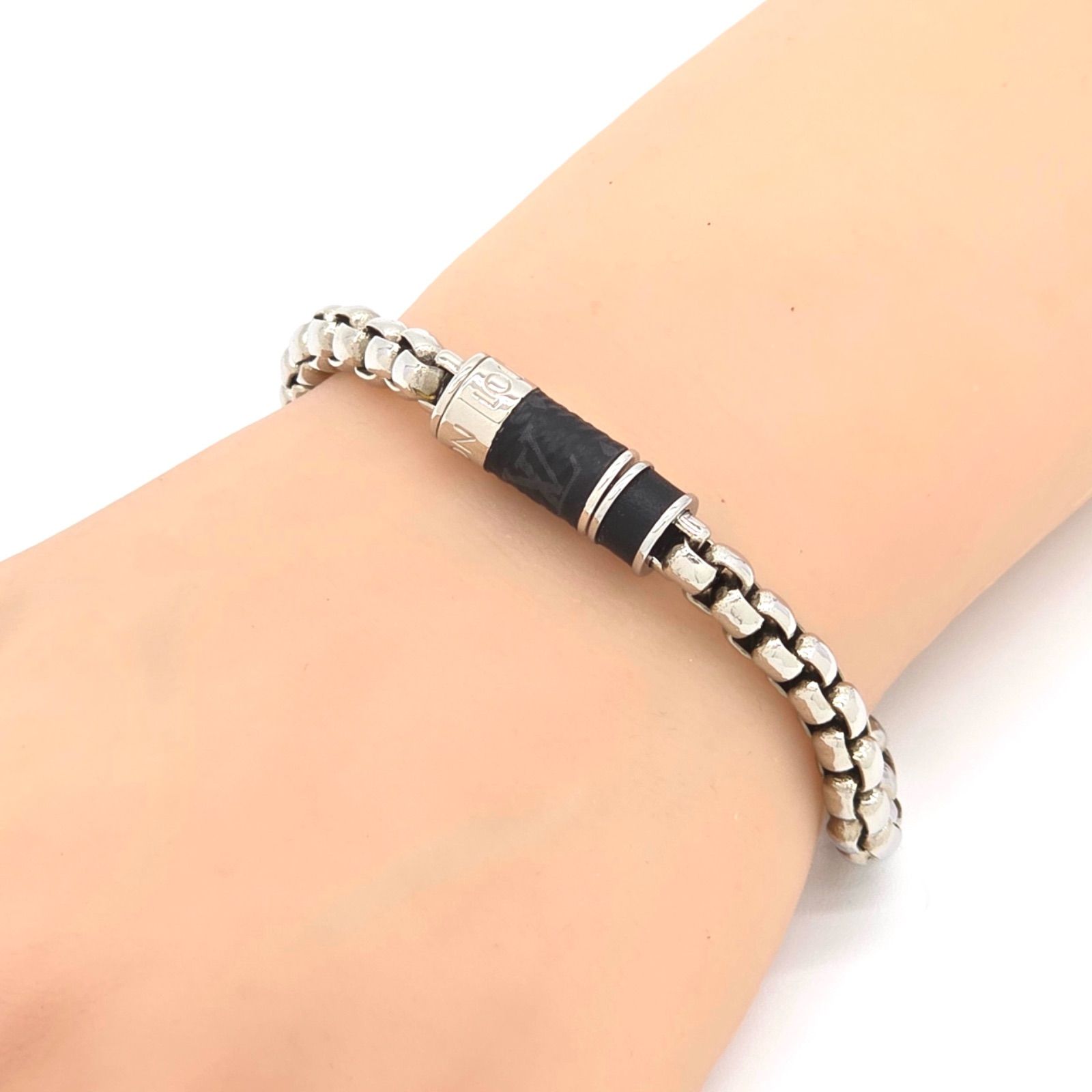 LOUIS VUITTON ルイヴィトン M 62592 ブレスレット チェーン モノグラム エクリプス 全長20㎝ シルバー メタル イタリア製