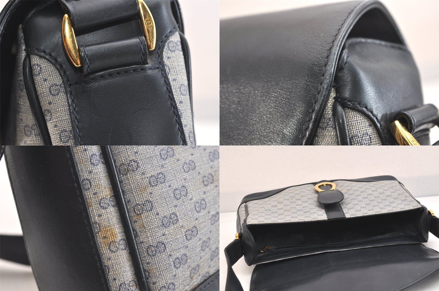 GUCCI グッチ ヴィンテージ マイクロGG ピーブイシー レザー ショルダーバッグ ネイビーブルー 2458 N
