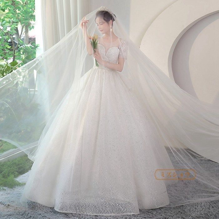 ウェディングドレスAライン花嫁ドレス前撮り二次会ドレス花嫁ドレス白編み上げ二次会ウエディングドレス二次会結婚式キラキラ