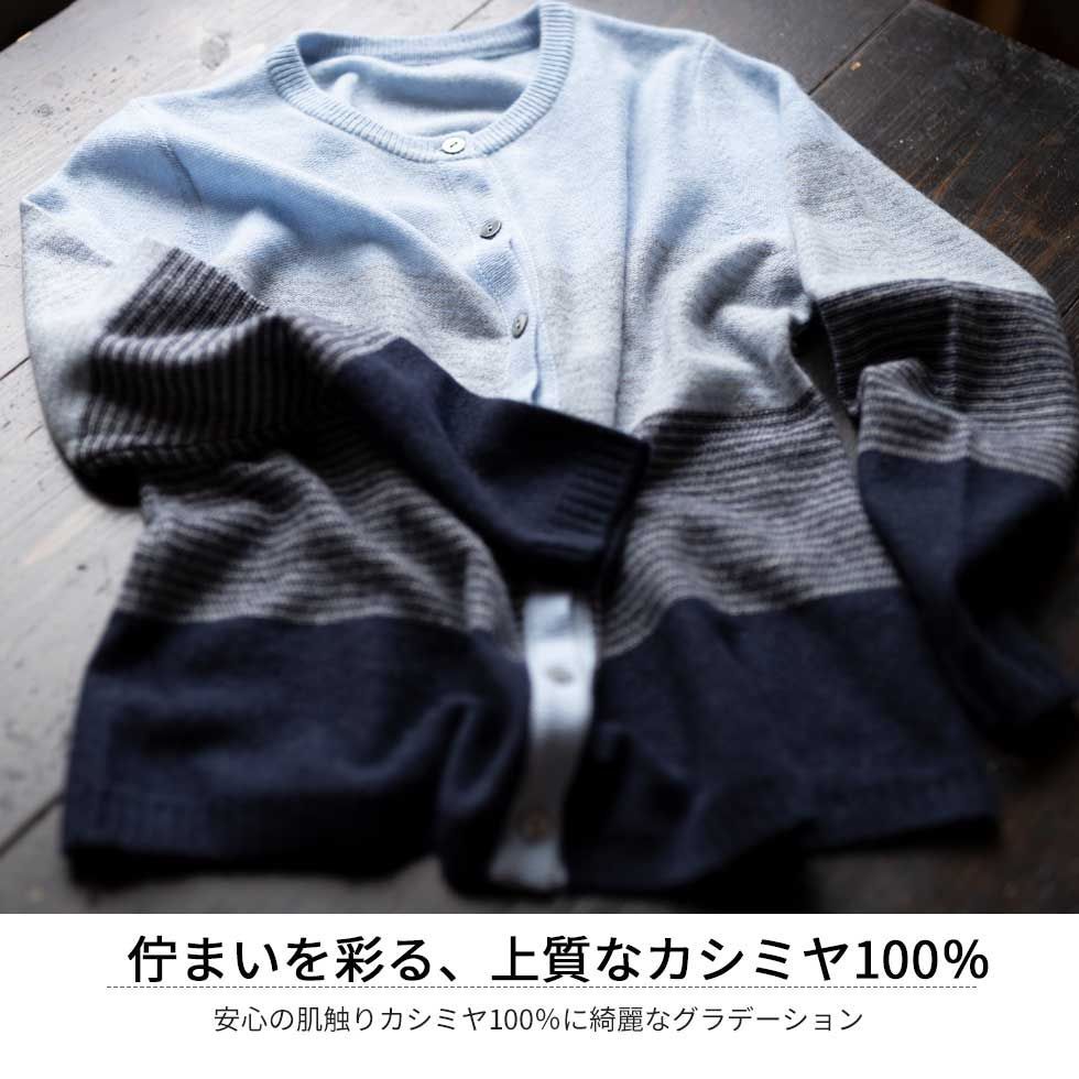 カシミヤ100%グラデーションが綺麗なカーディガンです。