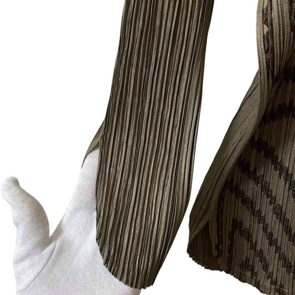 【商品名】PLEATS PLEASE ISSEY MIYAKE プリーツプリーズ イッセイミヤケ 総柄 ブラウス PP41-JJ745 サイズ4 カーキ