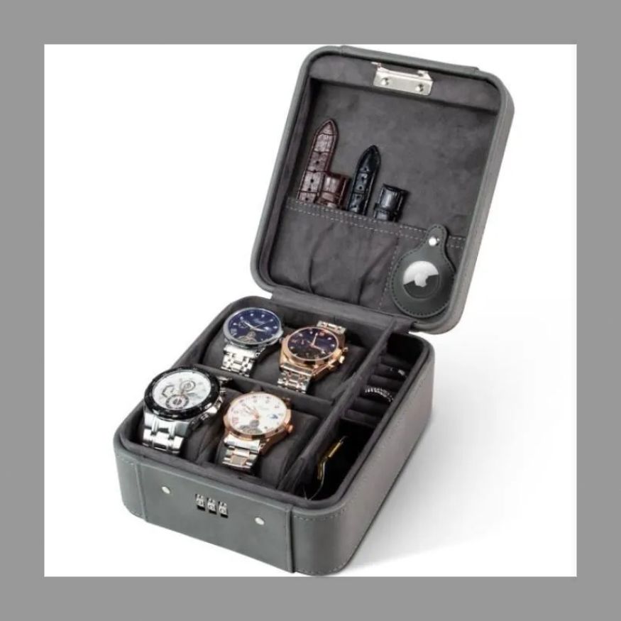 本革ナパ柄スクエア時計ケースジッパーバッグシンプルレザー時計収納バッグ二重時計ケース