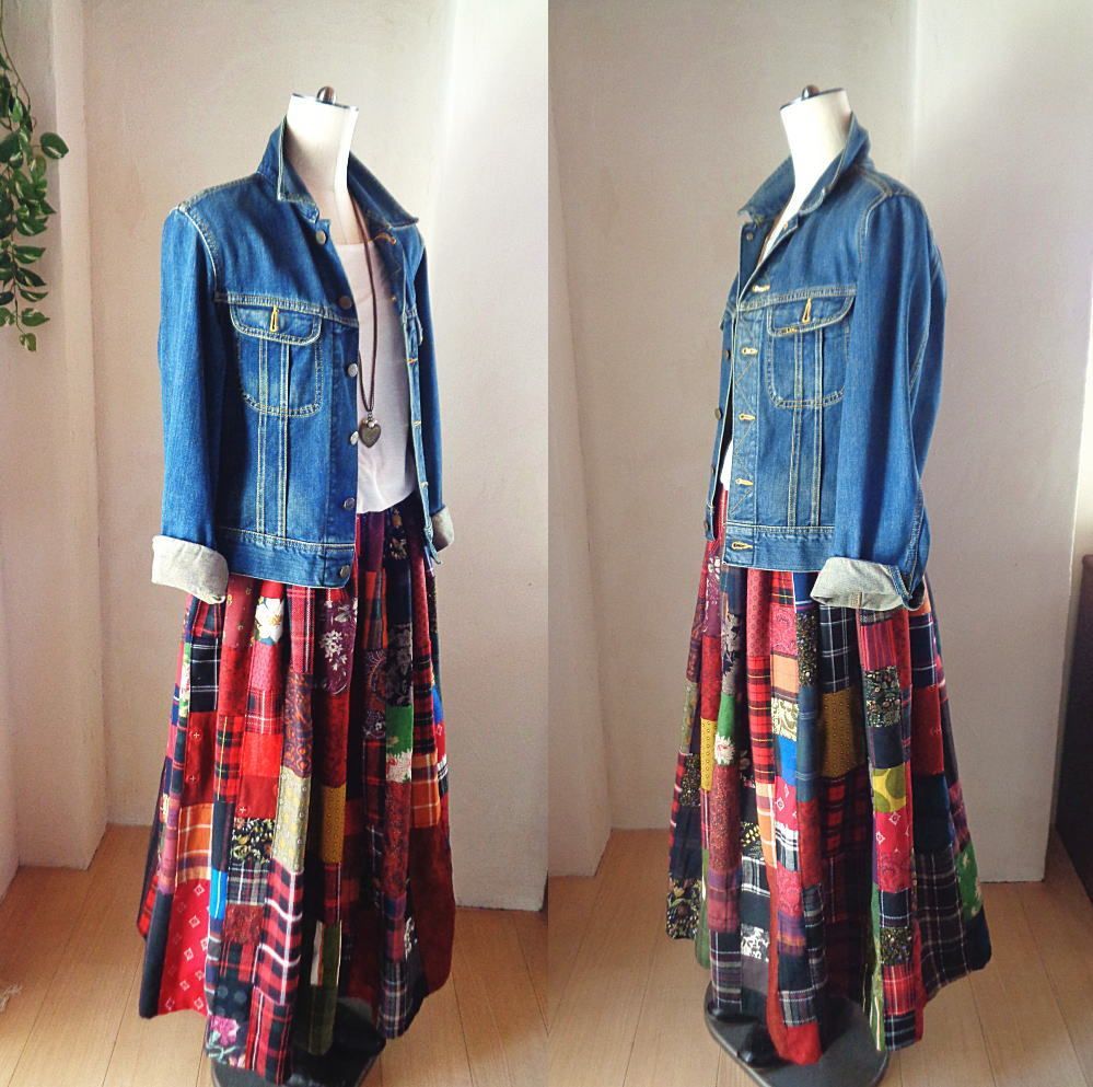 宝物のような絵画なパッチワークスカートです。