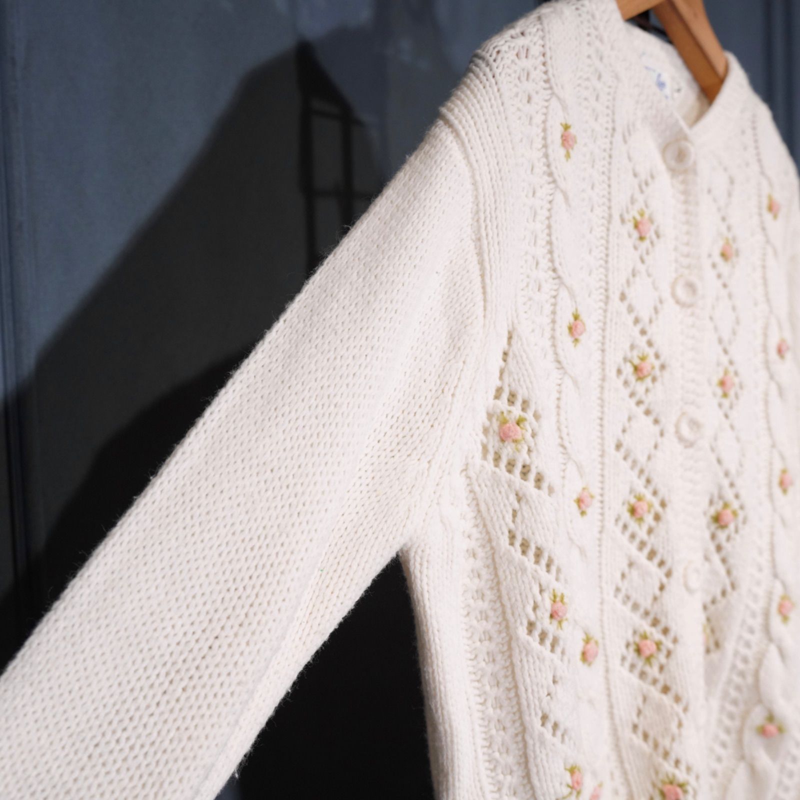 *SPECIAL ITEM* 70’s〜 USA VINTAGE Jan Lee FLOWER EMBROIDERY DESIGN KNIT CARDIGAN/70年代〜アメリカ新品お花刺繍ニットカーディガン