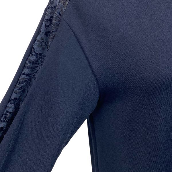 ◆ エポカ EPOCA 裾レース ニットワンピース 膝丈 長袖 刺繍 花モチーフ Iライン ネイビー 40 L 11号 レディース S 5 V 595