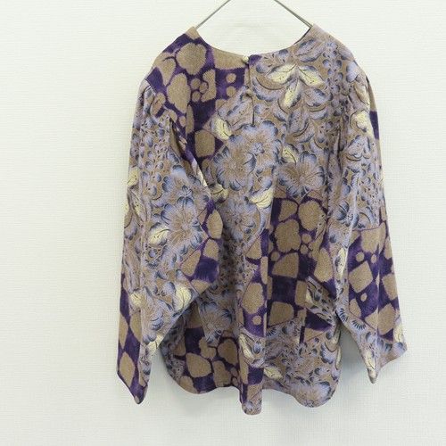 ◎商品名(タイトル):シセンドウ 詩仙堂 ヒトシタムラ ヴィンテージ カットソー ブラウス プルオーバー 七分袖 ちりめん 総柄 [a968970]