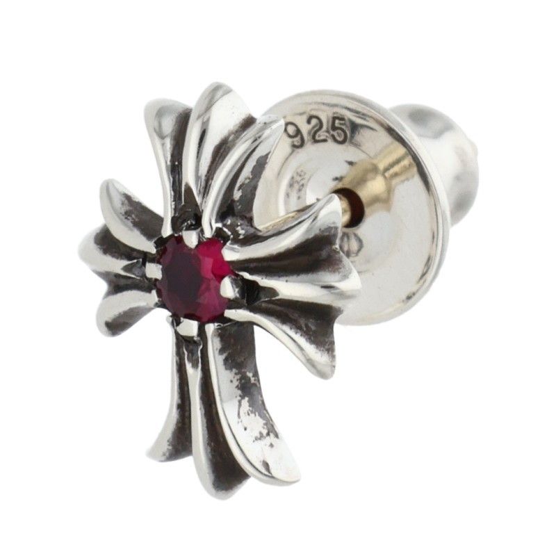 クロムハーツ No 2 CH CRS RUB CHクロススタッド 1ルビー シルバーピアスピアス メンズ