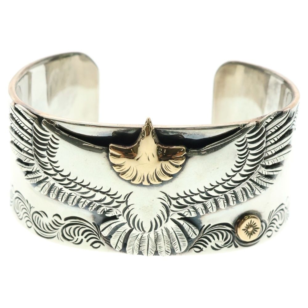 【品名】K18 台付き太陽神付き 頭金 中イーグル付き 唐草 カスタム バングル ブレスレット シルバー/ゴールド