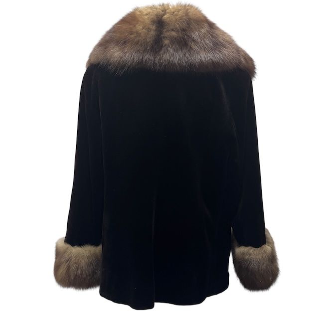 カルヴェン CARVEN ロシアンセーブル シェアードミンク SABLE MINK 毛皮 コート フリル デザイン リアルファー ブラック ブラウン 13-15 AR L-LL相当