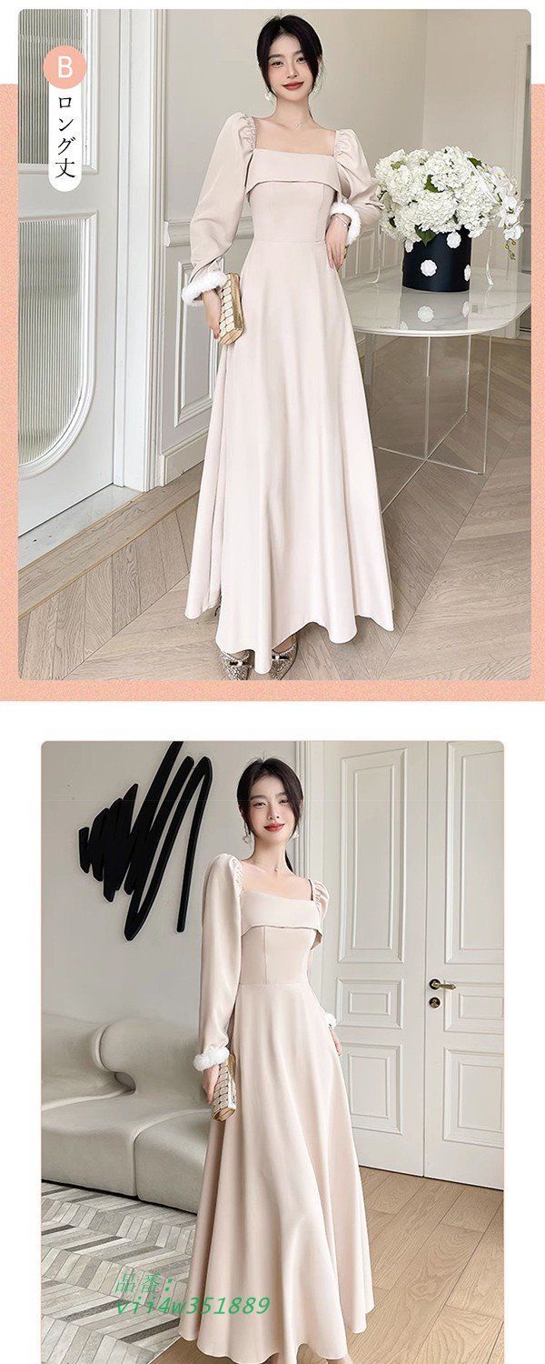 ブライズメイド ドレス 大人 ピアノ 発表会 ロングドレス 小さいサイズ 演奏会 ミモレ丈 大きいサイズ 結婚式 キラキラ 袖付き 演奏会用ドレス vii 4 w 351889