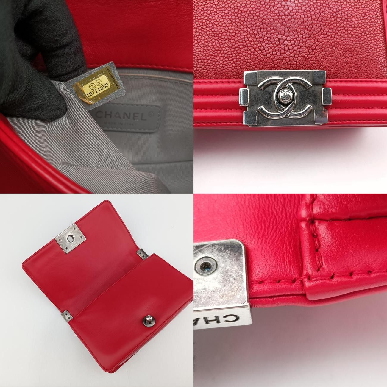 シャネルChanelボーイシャネルレッドパールフィッシュスキン×ラムスキン