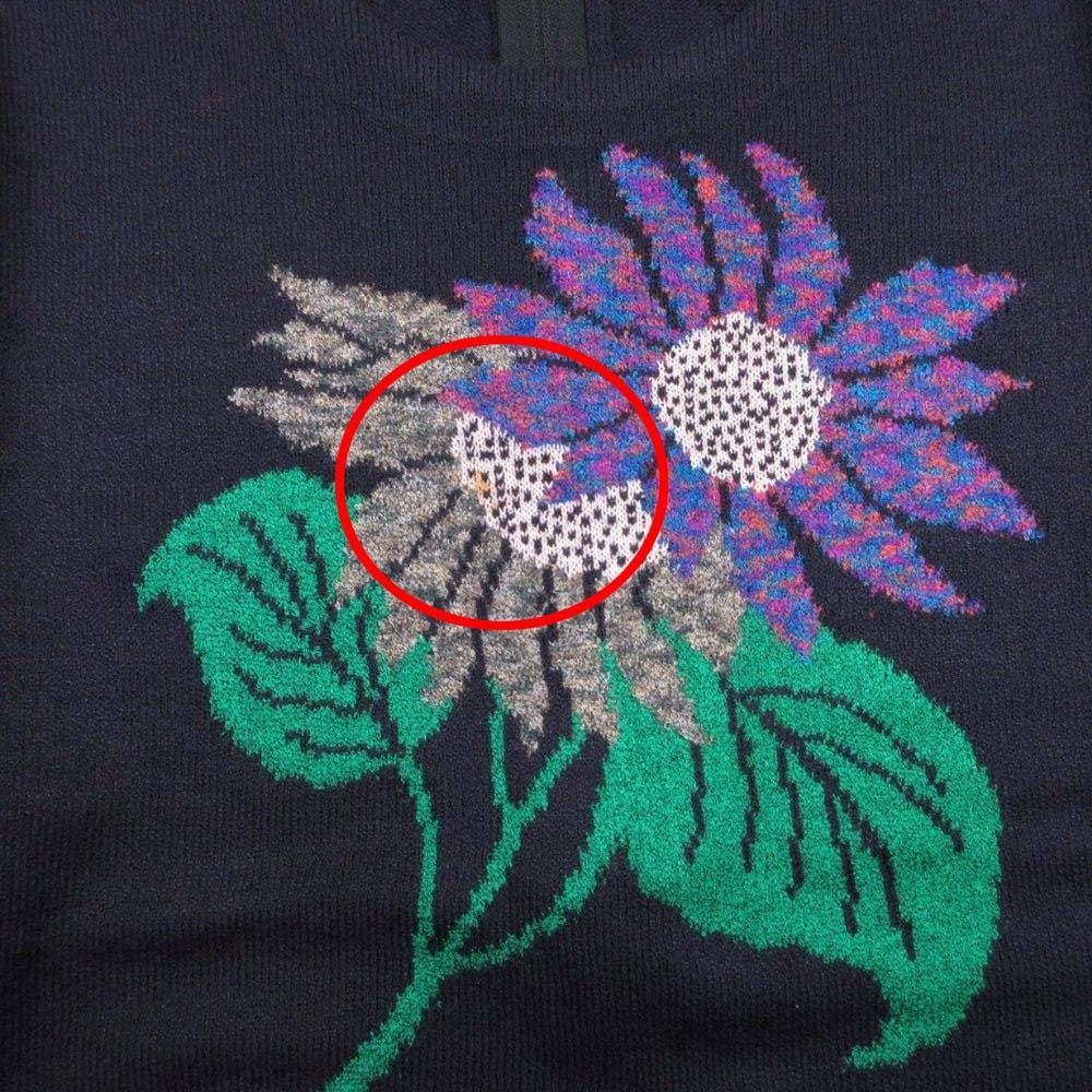 トヨコサイトウ 斎藤都世子 バックジップ ニット セーター 花柄 ロング スカート セットアップ 紺 ネイビー レディース 古着