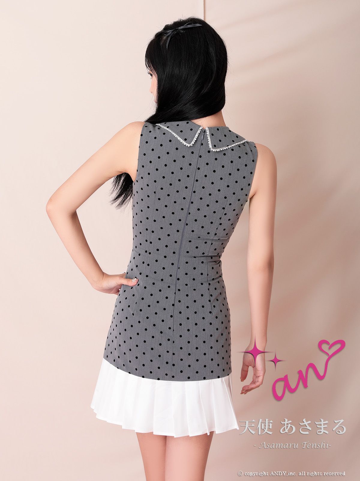 グレーXS AOC 3967-GY-2508 XSサイズあり an|アン ドット柄| バイカラー| 襟付き| バストジップ| パール| パイピング| 切替| プリーツ| フ | ミニドレス| キャバドレス