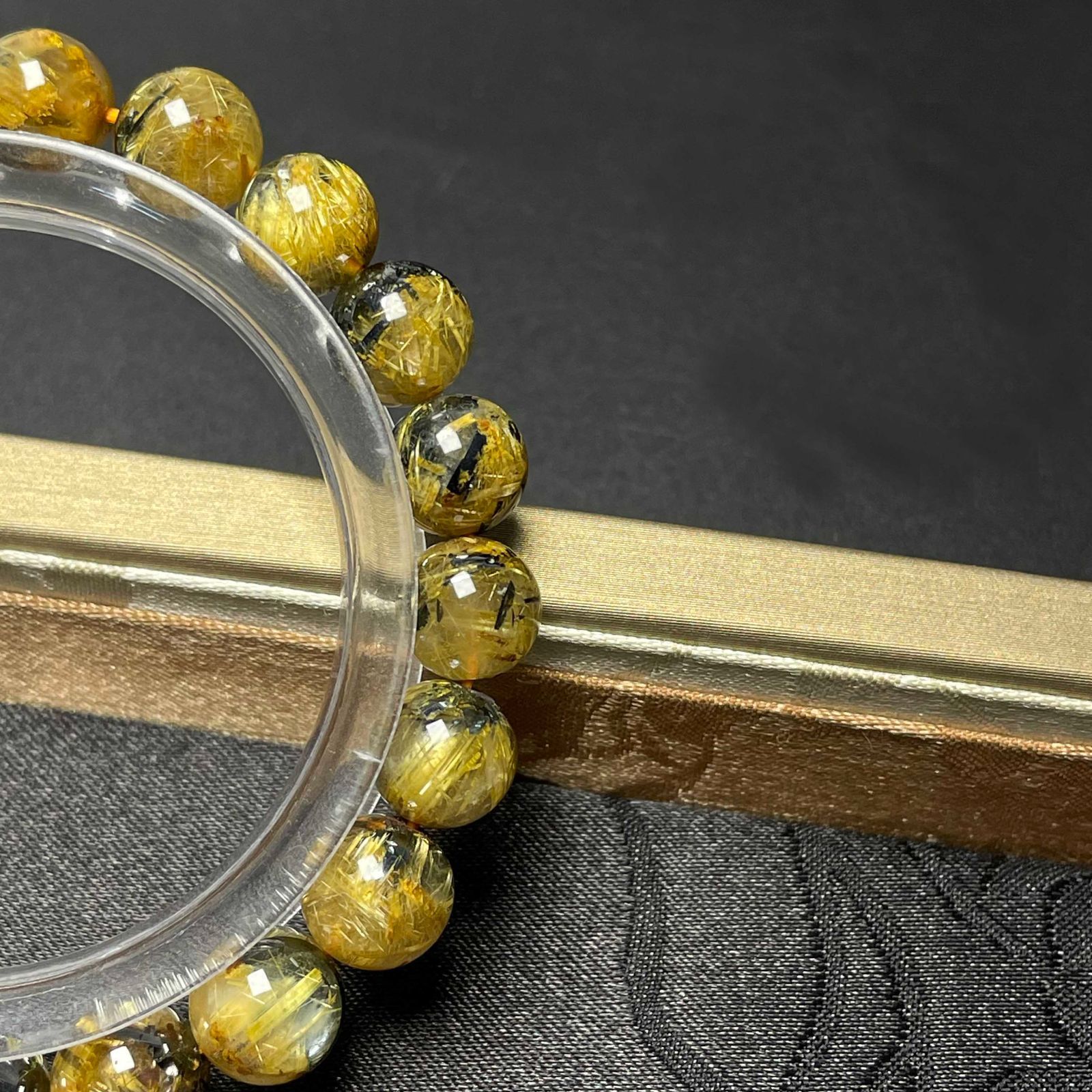 10 OFF 絶賛 EU製 太陽花タイチンルチル 黄金針水晶 金運 開運 ゴールド ブレスレット パワーストーン プレゼント1 8.8-9.3 mm ZB 9261