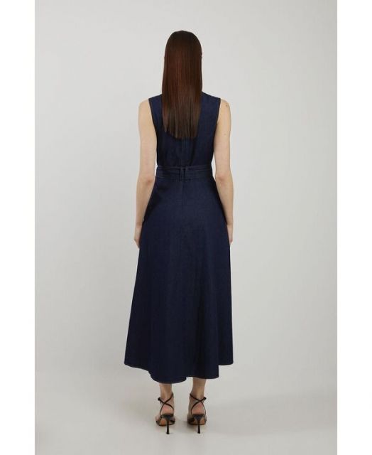 カレンミレン レディース ワンピース トップス Women s Belted Denim Midi Dress Indigo
