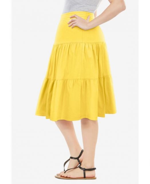 ウーマン ウィズイン レディース スカート ボトムス Women s Within Elastic-Waist Knit Tiered Skirt Primrose yellow