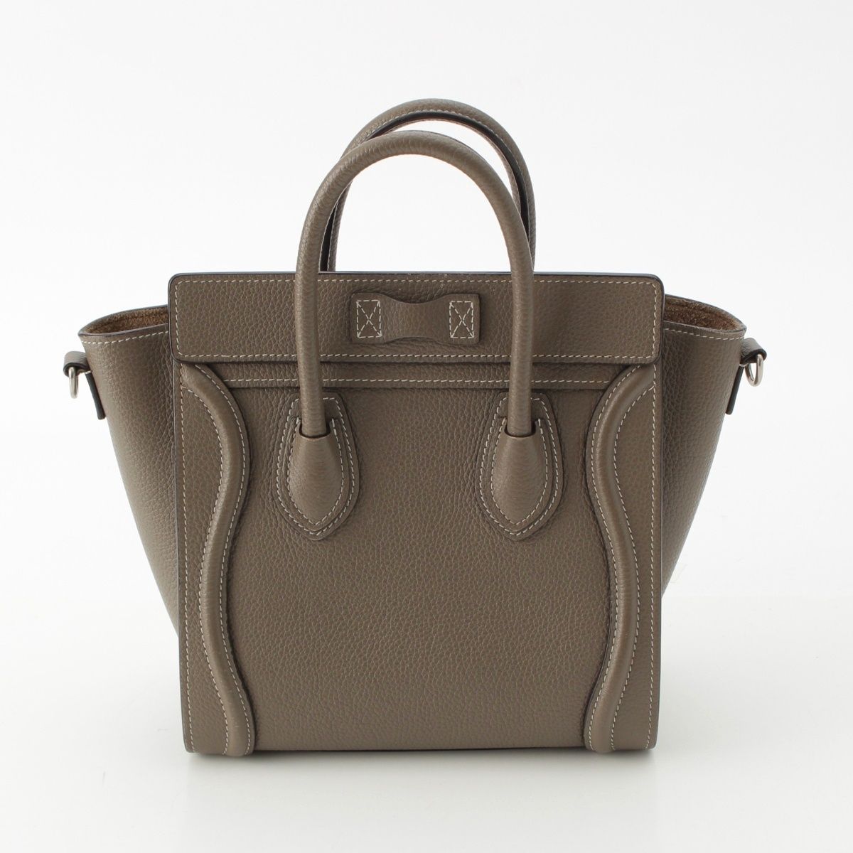 セリーヌ ラゲージ ナノショッパー ドラムドカーフスキン 2 WAY ショルダー ハンドバッグ グレージュ