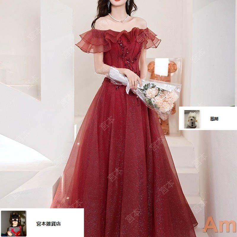 華やかな雰囲気漂うオフショルダースタイルのロングドレスです。美しいレッドカラーとスパンコール刺繍が、あなたのパーティーシーンを一層輝かせてくれます。ボートネックデザインが大人の魅力を引き立て、女性らしいシルエットを演出します。