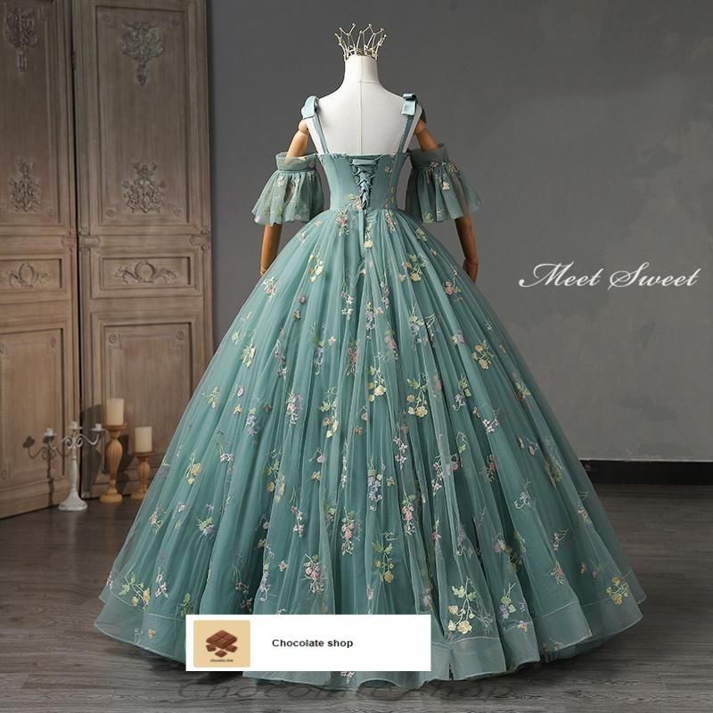 カラードレス 3 way 付け袖 グリーン 編み上げ ロングドレス 結婚式 二次会 発表会 演奏会 ウェディングドレス ウエディングドレス 花嫁 前WP数量 価格926