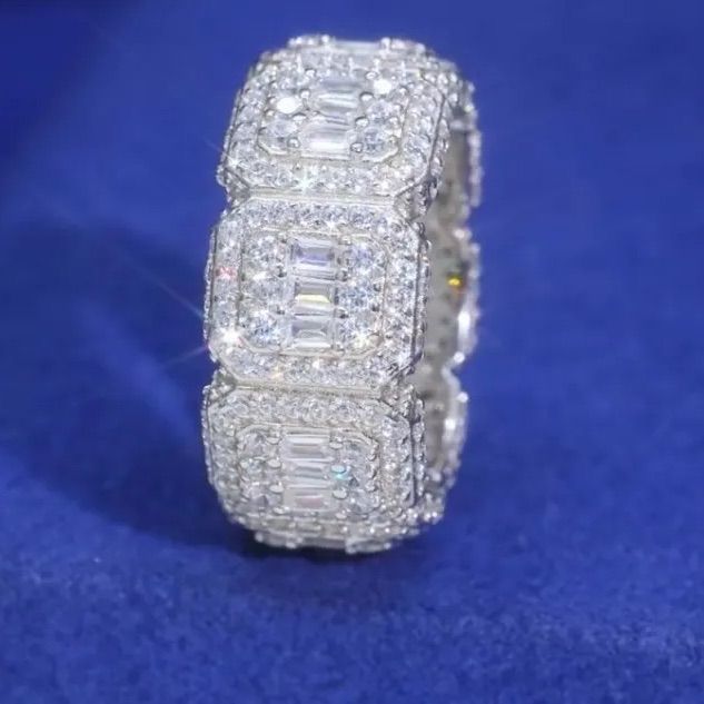 Moissanite モアサナイト S925 シルバー925 テニスチェーン ring 指輪 バゲットカット baguette icedout ブリンブリン hiphop jewelry メンズ レディース ユニセックス VVS diamond tester ラッパー愛用 流行 トレンド